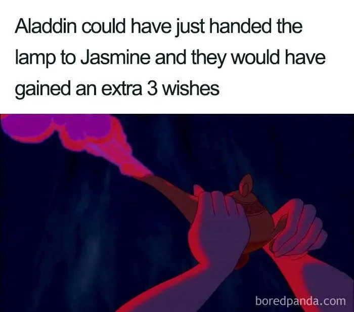 9. ถ้าอะลาดินอาจมอบตะเกียงให้จัสมิน พวกเขาอาจขอพรได้เพิ่มอีก 3 ข้อ