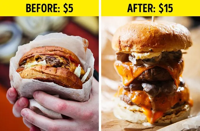 แม้ว่าจะเป็นอาหารแบบเดียวกัน ส่วนประกอบเหมือนกัน ทุกอย่างเหมือนกันหมด แต่การปรับเปลี่ยนหน้าตาจะทำให้เราคิดว่าเราได้ของที่ดีกว่า พิเศษกว่า ทั้งๆ ที่เป็นของแบบเดียวกัน นั่นเองทำให้ร้านค้าสามารถขายอาหารที่ถูกตกแต่งให้สวยงาม ได้ในราคาที่สูงกว่า