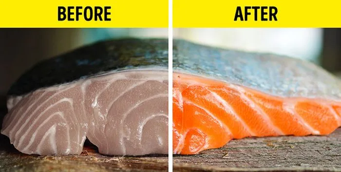 แซลมอนเป็นอาหารโปรดของใครหลายๆ คน แต่ฟาร์มใหญ่ๆ ที่เลี้ยงแซลมอนกลับไม่ได้เลี้ยงมันด้วยอาหารที่มีคุณภาพ ทำให้แซลมอนมีเนื้อสีเทา นั่นเป็นเหตุที่ว่าทำไมจึงมีการย้อมสีเนื้อปลา เพื่อให้ดูน่ากิน