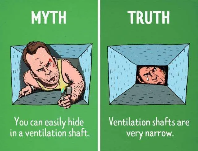 ความจริง: ช่องระบายอากาศเหล่านี้มันแคบมากๆ พระเอกตัวโตๆ ไม่มีทางเข้าไปได้หรอก