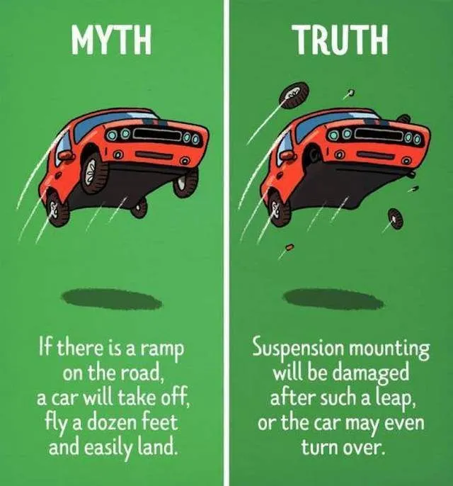 ความจริง: หากรถเหินอย่างนั้นจริง หลังลงพื้นรถจะเสียหายอย่างหนัก