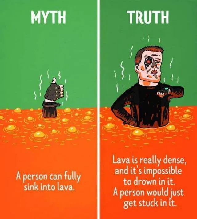 ความจริง: ลาวานั้นมีความหนาแน่นสูงและมนุษย์ไม่สามารถจมลงได้