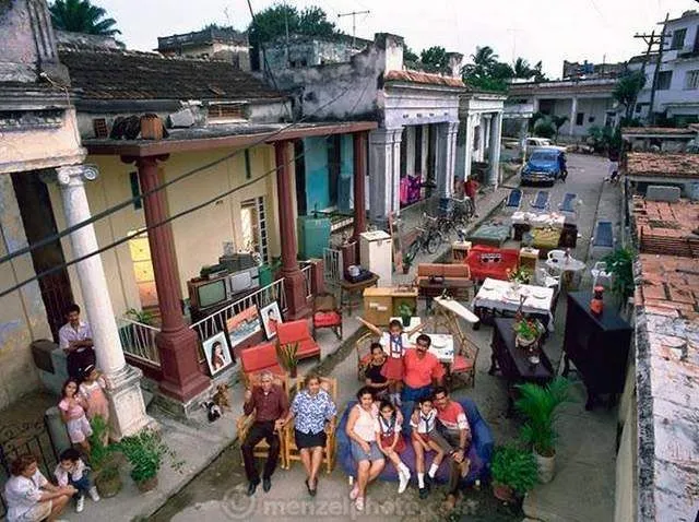 ครอบครัว Costa ในฮาวานา กับข้าวของทั้งหมดของพวกเขาส่วนใหญ่เป็นโต๊ะ โซฟา เก้าอี้ และตู้ตั้งโชว์