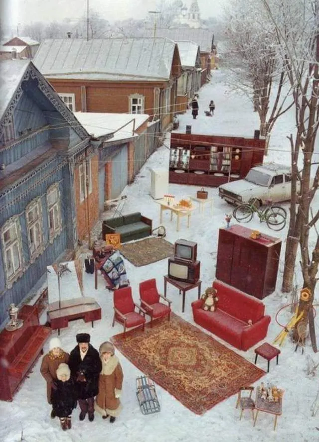 ครอบครัวคาพราลอฟ มีสมาชิกทั้งหมด 4 คน คือพ่อแม่และลูกๆ อีกสองคน ถ่ายภาพที่หน้าบ้านของพวกเขาพร้อมกับสมบัติทุกๆ อย่างที่พวกเขามี