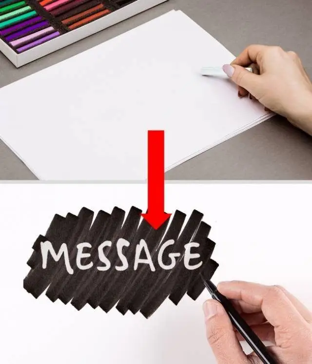 อุปกรณ์ที่ต้องใช้ มีกระดาษเปล่าๆ สีชอล์กสีขาว และปากกามาร์คเกอร์ ให้ใช้สีชอล์กเขียนข้อความ กระดาษจะดูเหมือนไม่มีอะไรเขียนอยู่ ถ้ามีคนต้องการอ่านมัน ก็ให้เขาเอาปากกามาร์คเกอร์มาระบาย แล้วข้อความจะปรากฏขึ้น!