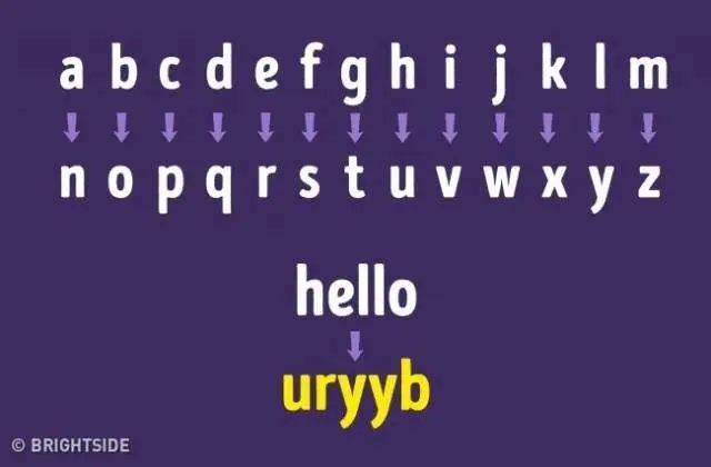 ถ้าต้องการสร้างข้อความที่เป็นรหัสลับ คุณสามารถใช้วิธีสะท้อนง่ายๆ แค่เขียนตัว A ถึง M อยู่บรรทัดเดียวกัน แล้วใต้ตัว A ถึง M ให้เขียนตัว N ถึง Z แล้วเปลี่ยนตัวอักษรในคำให้เป็นตัวอักษรในบรรทัดที่ 2 เช่นคำว่า “Hello“ ก็จะกลายเป็น ”uryyb”