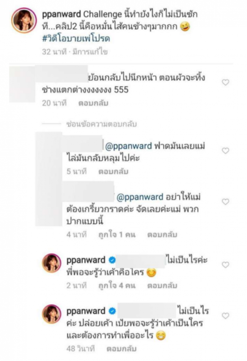 เรียกได้ว่าเป็นเรื่องธรรมดาไปแล้วก็ว่าได้ เมื่อมีคนเข้ามา คอมเม้นท์ในคลิปวีดิโอ ของแม่ เป้ย ปานวาด โดยแม่เป้ยได้โพสต์ รูปเต้นคู่กับสามี ป็อป นิธิ บุญยรัตกลิน เป็นการเต้น cover เพลง ลงในอิสตาแกรม โดยได้โพสต์ภาพพร้อมทั้งระบุข้อความว่า Challenge นี้ทำยังไงก็ไม่เป็นซักที คลิป 2 นี้คือหมั่นคนข้างๆมาก วีดิโอบายพี่โปรด
