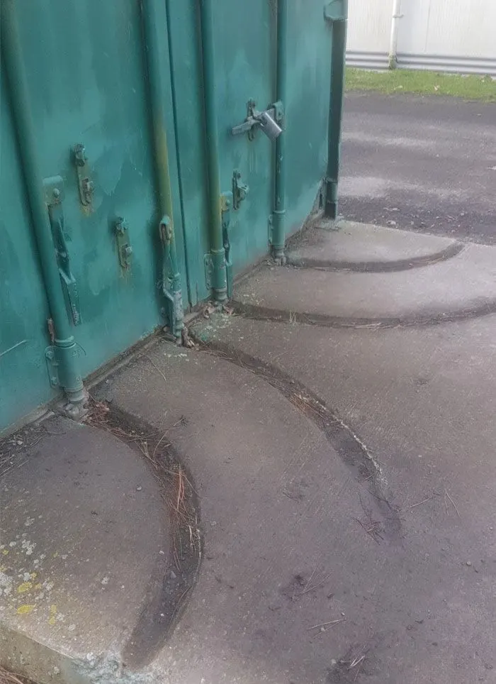 8. รอยบนพื้นคอนกรีตที่กลายเป็นร่อง เกิดจากการเปิดประตูมานานนับ 10 ปี
