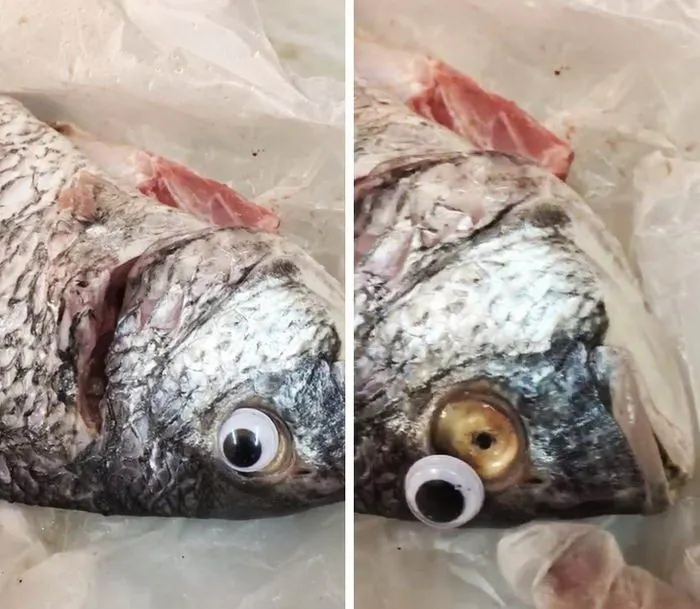 1. “เราพบสิ่งนี้ที่ทำงานเมื่อคืนนี้ ปลาในถังน้ำถูพื้น”