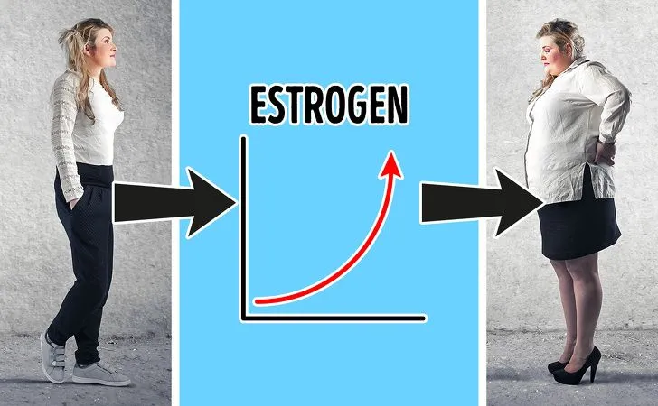 Estrogen เป็นฮอร์โมนเพศหญิงปฐมภูมิ ความไม่สมดุลของระดับฮอร์โมนเอสโตรเจนในร่างกายสามารถนำไปสู่การเพิ่มน้ำหนักได้ ระดับฮอร์โมนเอสโตรเจนสูงในร่างกายอาจเกิดจากการผลิตฮอร์โมนมากเกินไปหรือเนื่องจากอาหารที่อุดมด้วยฮอร์โมนเอสโตรเจน