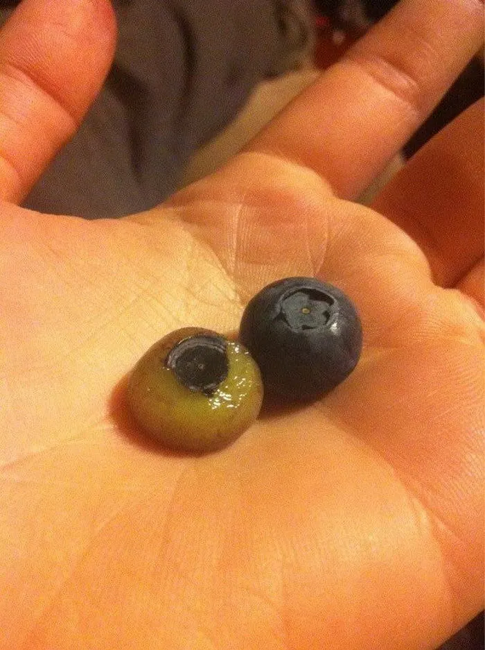 2. เมื่อบลูเบอร์รี ถูกปอกเปลือกออกจะหมด มันไม่ค่อยจะบลูเท่าไหร่