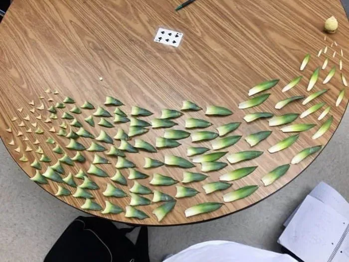 4. มันก็คือ ใบรอบๆ สับปะรดนั่นเอง และถ้าเราปอกเปลือกสับปะรดออก มันก็จะเห็นเป็นตาๆ แบบนี้