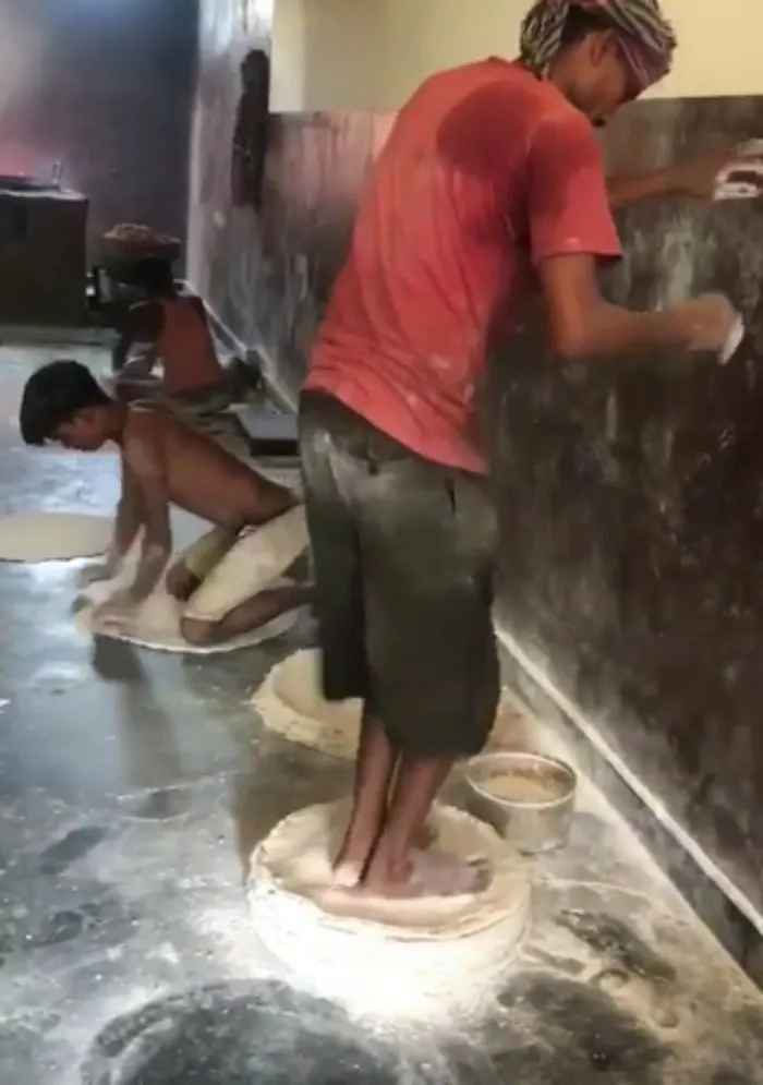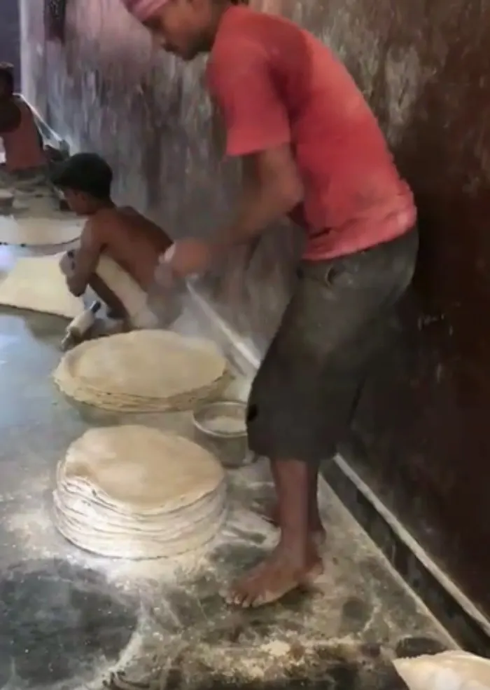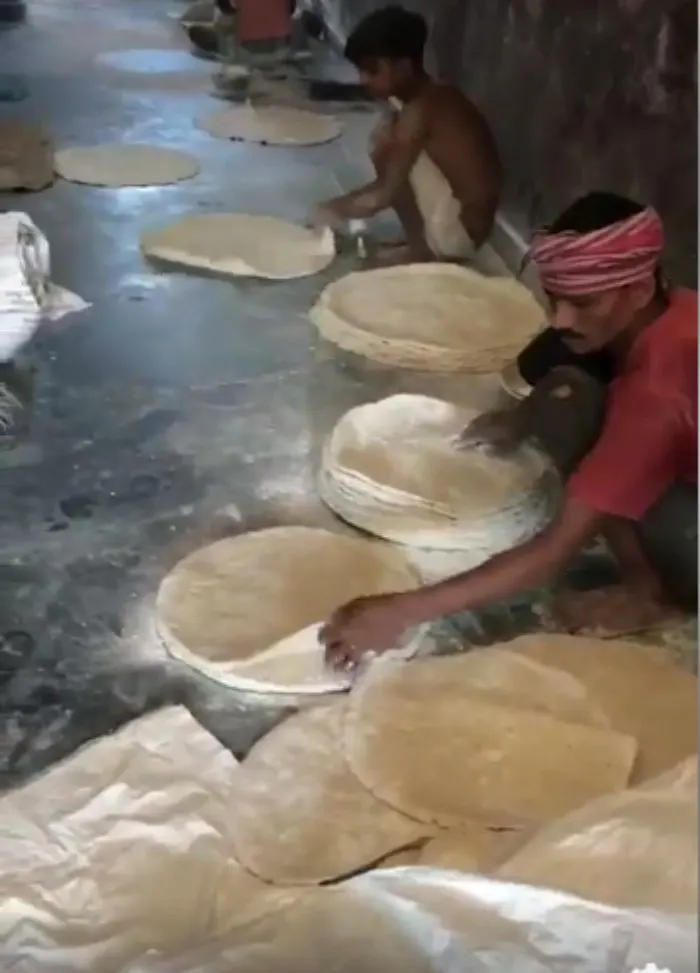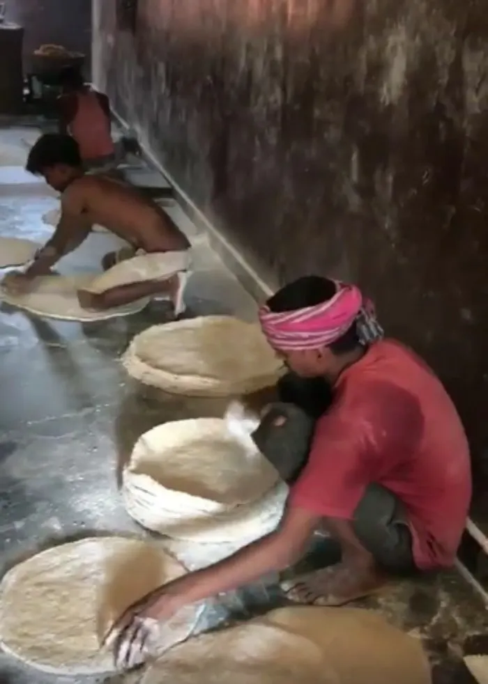 กับการทำโรตีในประเทศหนึ่ง ที่กลุ่มคนงาน ปั้นแป้ง แผ่ๆ ให้เป็นแผ่น แล้วขึ้นนวดๆ ให้แบน แบบนี้มาดูกัน
