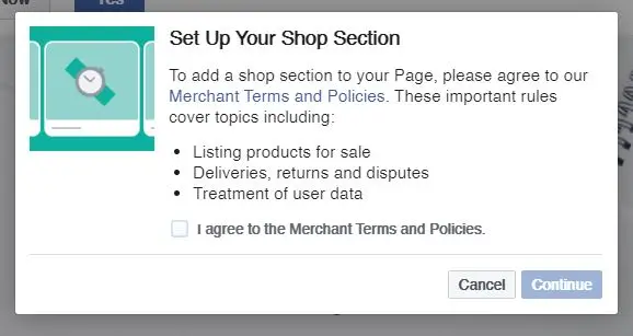 ขั้นตอนที่ 2 เมื่อคลิกที่เมนู Shop แล้ว สำหรับคนที่พึ่งใช้ฟีเจอร์นี้ครั้งแรก ระบบจะมีแบบฟอร์มให้เราอ่านเงื่อนไขของการขาย เมื่อคลิกเห็นด้วย ให้กดที่ Continue หรือกดต่อไป
