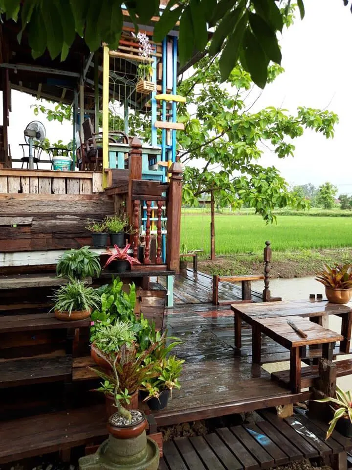 ไอเดียสร้างสรรค์ กับบ้านไม้สองชั้น สร้างจากเศษไม้ต่อๆกันทาด้วยสีน้ำมันสีสเปย์ สีสันสวยงาม สวยโดดเด่นกลางทุ่งนาเหมือนสวรรค์บนดิน