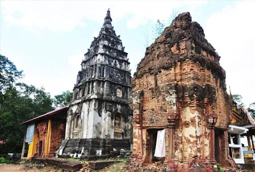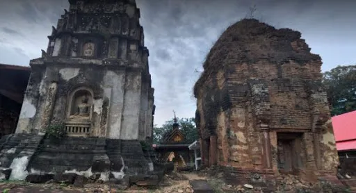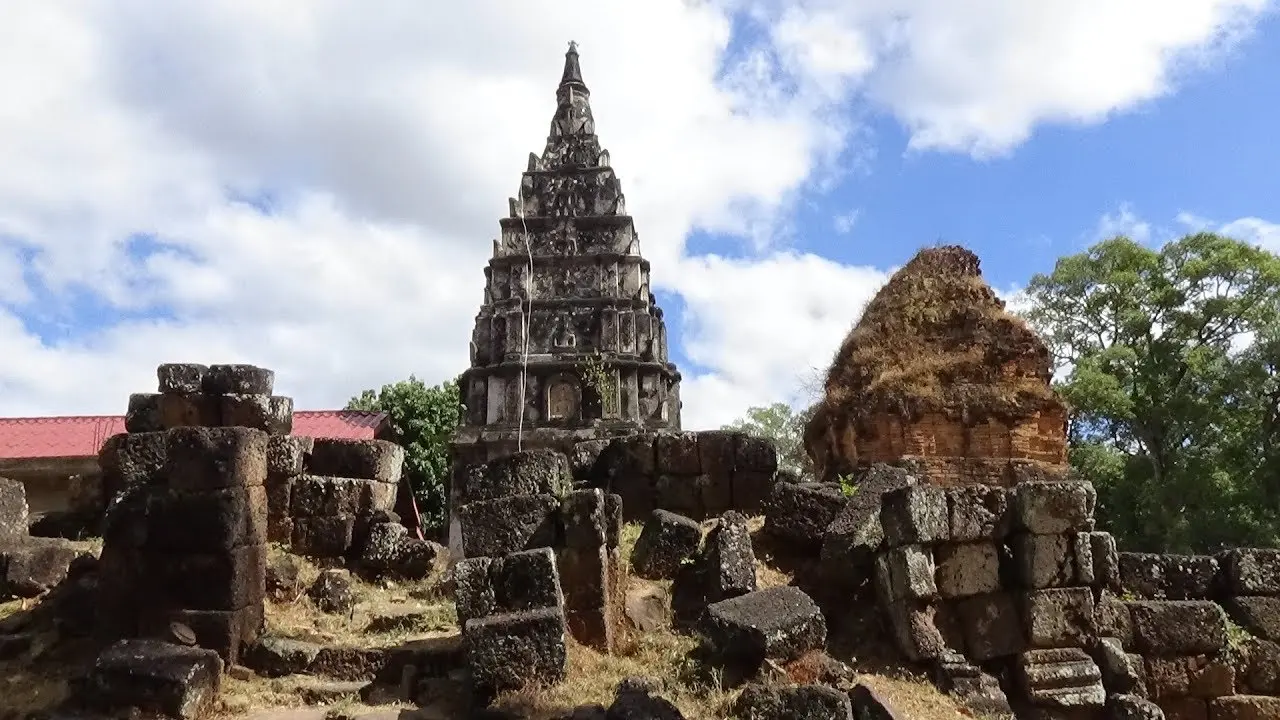 กู่พระโกนา เป็นโบราณสถาน ศิลปะขอม ที่มีอายุในราว พ.ศ. 1560-1630 (แบบปาปวน) สันนิษฐานว่ากู่พระโกนาคงจะสร้างขึ้นในราว พุทธศตวรรษที่ 16 ซึ่งประกอบด้วยปรางค์อิฐ 3 องค์ บนฐานศิลาทรายเรียงจากเหนือ – ใต้ทั้งหมดหันหน้าไปทาง ทิศตะวันออก มีกำแพงล้อม และซุ้มประตูเข้า – ออกทั้งปรางค์องค์ กลางถูกดัดแปลงเมื่อ พ.ศ. 2471 โดยการฉาบปูนทับ และก่อขึ้นเป็นชั้น ๆ แต่ละชั้นมีซุ้มพระทั้ง 4 ทิศ หน้าปรางค์องค์กลางชั้นล่างสร้างเป็นวิหาร พระพุทธบาท ประดับเศียรนาค 6 เศียร ของเดิมไว้ด้านหน้าส่วน ปรางค์อีก 2 องค์ ก็ได้รับการบูรณะจากทางวัด เช่นกัน แต่ไม่ถึงกับเปลี่ยนรูปทรงอย่างปรางค์องค์กลาง ปรางค์องค์กลางถูกดัดแปลงเมื่อ พ.ศ. 2471 โดยการฉาบปูนทับและก่อขึ้นเป็นชั้น ๆ แต่ละชั้นมีซุ้มพระทั้ง 4 ทิศ หน้าปรางค์องค์กลาง ชั้นล่าง สร้างเป็นวิหาร มีพระพุทธบาทประดับ เศียรนาค 6 เศียรของเดิมไว้ด้านหน้า ส่วนปรางค์ อีก 2 องค์ ก็ได้รับการบูรณะจากทาง วัดเช่นกันแต่ไม่ถึงกับเปลี่ยนรูปทรงอย่างปรางค์องค์กลาง ปรางค์องค์ทิศเหนือ ทางวัดสร้างศาลาครอบ ภายในมีหน้า บันสลักรามายณะและประทับสลัก ภาพพระนารายณ์บรรทมสินธุ์อยู่ที่เดิมคือเหนือประตูทางด้านหน้า ส่วนทับหลังประตูด้านทิศตะวันตก หล่นอยู่บน พื้นเป็นรูปนารายณ์ทรงครุฑปรางค์องค์ทิศใต้ยังคงมีทับหลังของเดิมเหนือประตูหลอกด้านทิศเหนือเป็นภาพเทวดานั่งชันเข่า ในซื้อเรือนแก้วเหนือหน้ากาล นอกจากนี้ ทางด้านหน้ายังมีทับหลังหล่นที่พื้นเป็นภาพพระอิศวรประทับนั่งบนหลังโค
