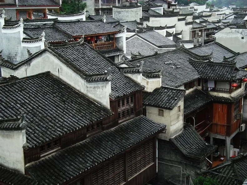 เมืองโบราณได้รับการรักษารูปแบบและรูปลักษณ์ดั้งเดิมของราชวงศ์หมิงในศตวรรษที่ 14 และราชวงศ์ชิงในศตวรรษที่ 17 จนถึงทุกวันนี้ เมืองโบราณที่มีอาคารพักอาศัยโบราณกว่า 200 หลังถนนสายเล็กหรือถนนใหญ่ 20 สายถนนและตรอกซอกซอย 10 สายรวมถึงกำแพงเมืองโบราณ หอประตูเมืองโบราณ หินกระโดดโบราณ บ่อน้ำโบราณ สะพานสายรุ้งโบราณ วัดโบราณของวรรณคดี, วัดโบราณของบทกวี, วัดบรรพบุรุษโบราณเป็นต้นซึ่งทั้งหมดถูกเก็บรักษาไว้ในสภาพดั้งเดิม