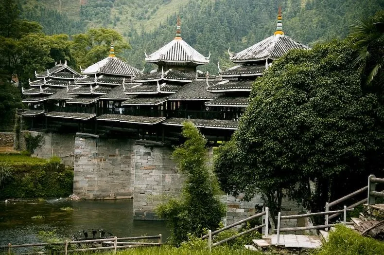 ชนกลุ่มน้อยดงเป็นหนึ่งใน 56 ชนกลุ่มน้อยที่อาศัยอยู่ในประเทศจีน ชาวดงอาศัยอยู่ในหมู่บ้านที่กระจัดกระจายในมณฑลหูหนานหูเป่ยกุ้ยโจว และกวางสีของจีนที่มีชื่อเสียงในเรื่องของข้าวหวานแบบดั้งเดิม และทักษะช่างไม้ที่ไม่เหมือนใคร ซึ่งแสดงโดยการสร้างสะพานไม้ที่สวยงาม สะพานเหล่านี้เรียกว่า "สะพานลมและฝน" เพราะมีศาลาสร้างขึ้นบนสะพาน เพื่อเป็นที่พักพิงแก่ผู้คนจากลมและฝน สะพานเหล่านี้ยังได้รับชื่อว่า"สะพานดอกไม้" เนื่องจากเป็นสถาปัตยกรรมที่งดงาม ในวันที่ฝนตกศาลาบนสะพานเป็นสถานที่ที่เหมาะสำหรับการพบปะสังสรรค์ผ่อนคลายพบปะสังสรรค์แลกเปลี่ยนความคิดเห็น และเป็นที่ชื่นชอบของบุคคลทั่วไป