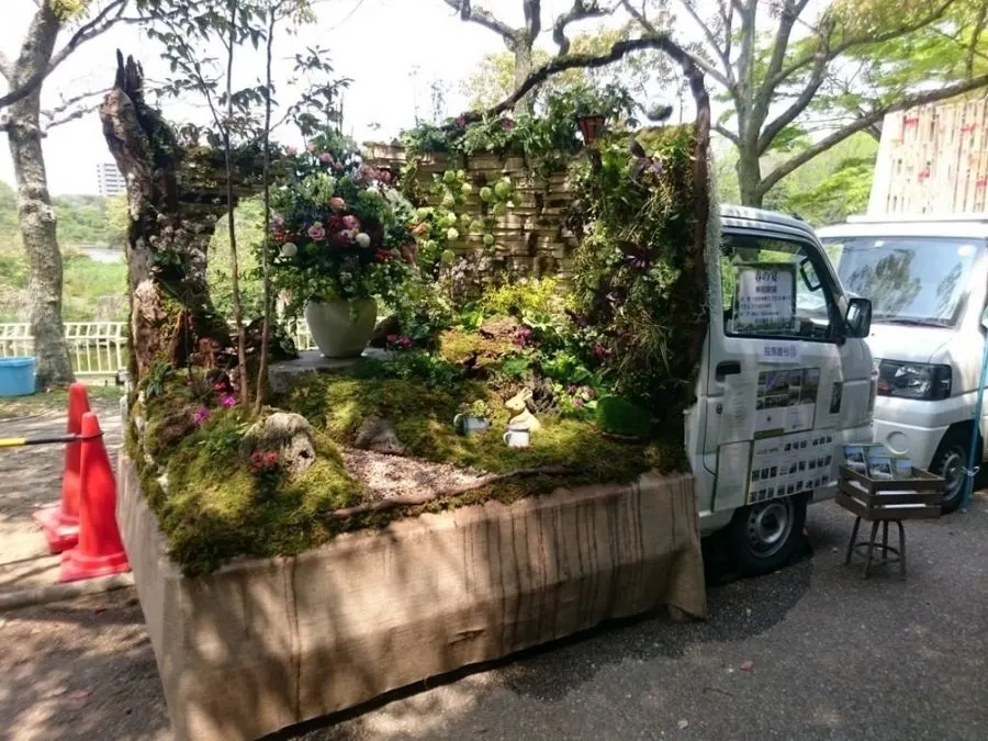 สหพันธ์ผู้รับเหมาภูมิทัศน์แห่งญี่ปุ่นจัดประกวดภูมิทัศน์ประจำปีโดยผู้จัดภูมิทัศน์จากทั่วประเทศญี่ปุ่นมาถึงสถานที่ด้วยรถกระบะขนาดเล็กจากนั้นใช้เวลาหลายชั่วโมงในการเปลี่ยนเตียงเก็บสินค้าให้เป็นสวนขนาดเล็ก การประกวดนี้มีชื่อว่า“ การประกวด Kei Truck Garden”