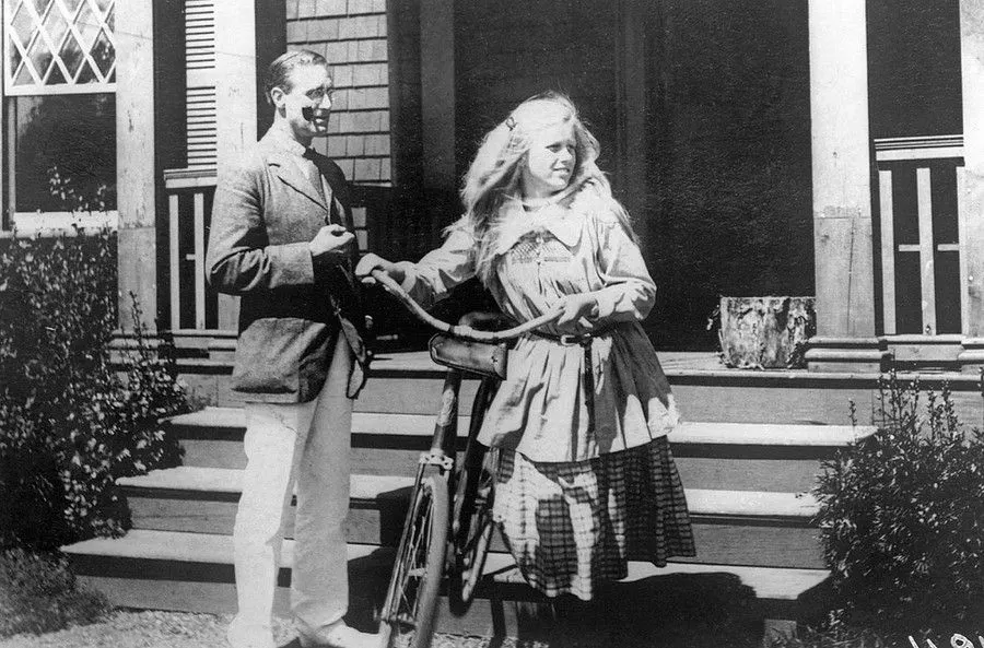 8.แฟรงคลินดี. รูสเวลต์รองผู้สมัครชิงตำแหน่งประธานาธิบดีในบ้านพักฤดูร้อนในแคมโปเบลโลกับแอนนาลูกสาววัย 14 ปีของเขาในเดือนสิงหาคม 2463 บนเกาะคัมโปเบลโลในนิวบรันสวิกแคนาดา