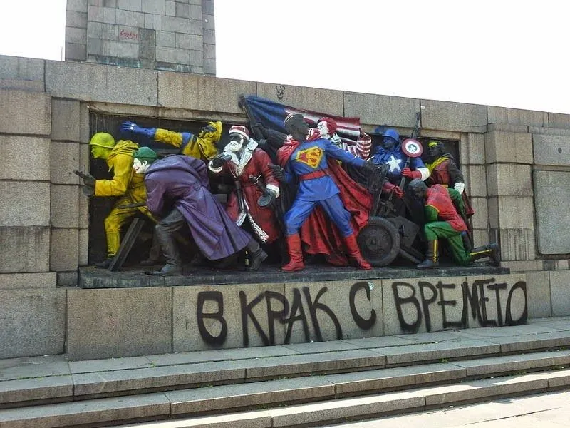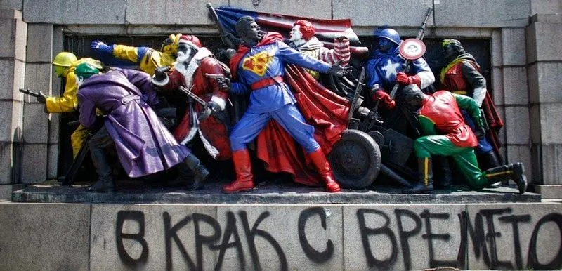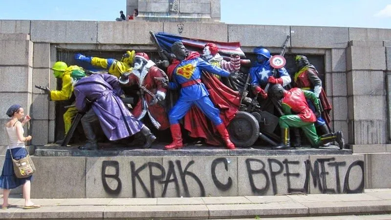 ประเทศเดนมาร์กเริ่มก่อตัวเมื่อเดือนมิถุนายน 2554 เมื่ออนุสาวรีย์ถูกทาสีในชั่วข้ามคืนโดยศิลปินที่ไม่รู้จักซึ่งเปลี่ยนทหารกองทัพโซเวียตให้กลายเป็นฮีโร่อเมริกันยอดนิยมและตัวการ์ตูนรวมถึงซูเปอร์แมน, โจ๊กเกอร์, กัปตันอเมริกา, ซานตาคลอส, วูล์ฟเวอรีน, หน้ากากและ Wonder Woman คำบรรยายใต้ภาพถูกเขียนไว้ใต้ซึ่งแปลว่า "ทันกับเวลา" เหตุการณ์ถูกครอบคลุมอย่างกว้างขวางโดยสื่อต่างประเทศและกระตุ้นการสนทนาอย่างจริงจังและต่อต้านรัสเซียในสังคมบัลแกเรีย