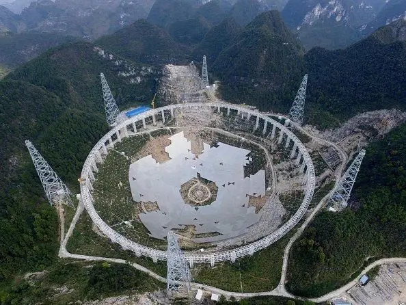 โครงสร้างที่ดูแปลกประหลาดนี้อันที่จริงแล้วเป็นกล้องโทรทรรศน์ที่ใหญ่ที่สุดในโลกและถูกสร้างขึ้นในประเทศจีน มันทรงพลังมากที่สามารถตรวจจับสัญญาณวิทยุได้ทุกชนิด มันสามารถตรวจจับสัญญาณที่ถูกกล่าวหาว่าอยู่ห่างออกไปหลายพันปีแสง