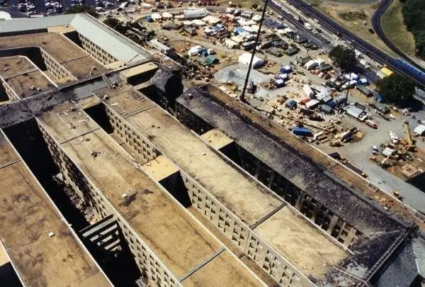 ภาพนี้แสดงให้เห็นอย่างชัดเจนถึงความเสียหายที่เกิดกับอาคารเพนตากอนเมื่อวันที่ 9/11 ก่อนการโจมตีเพนตากอนจะไม่มองสิ่งนี้ ภาพถ่ายนี้ไม่เคยเผยแพร่มาก่อนเพื่อให้ประชาชนชาวอเมริกันไม่เคยเห็นความเสียหายที่เกิดขึ้นจริง