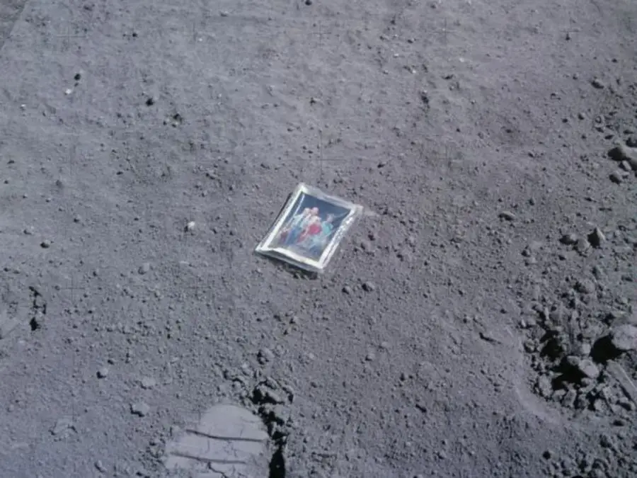 นี่คือภาพถ่ายของภาพถ่ายที่นักบินอวกาศ Charlie Duke ทิ้งไว้บนดวงจันทร์ ภาพเป็นของครอบครัวของเขาและเขาทิ้งไว้ที่นั่นเมื่อเขาอยู่ในภารกิจของอพอลโล 16