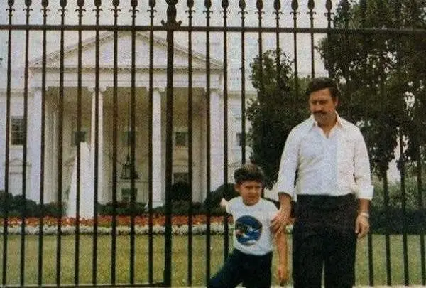 ที่นี่คุณเห็น Pablo Escobar วางตัวกับลูกชายของเขาใน Washington DC เมื่อถ่ายภาพนี้เขาอยู่ในรายการ“ อาชญากรที่ต้องการตัวมากที่สุด” ของอเมริกา ดูเหมือนว่าแปลกประหลาดที่เขาสามารถเข้าใกล้ทำเนียบขาวและไม่ถูกจับกุม