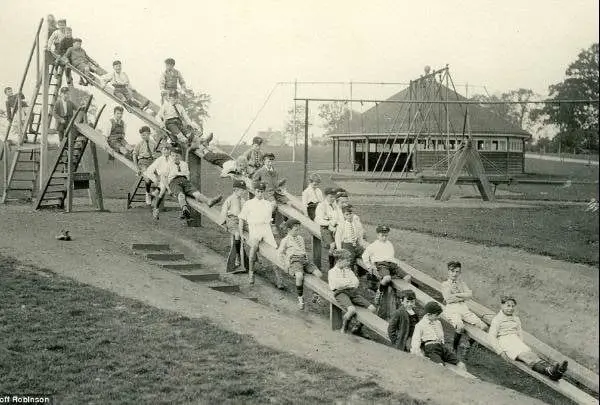 อย่างที่คุณเห็นในภาพนี้สไลด์แรกทำจากไม้ มันยาวมากและไม่มีรางด้านข้าง โชคดีที่พวกเขาไม่ได้หยุดอยู่แค่นั้นและในที่สุดก็มีการออกแบบที่ใช้งานได้ดีกว่ามาก