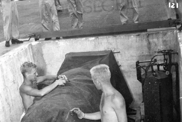 ไม่กี่วันก่อนหน้าขีปนาวุธนี้ที่ชื่อ“ มนุษย์อ้วน” ถูกทิ้งไว้ที่นางาซากิภาพนี้ถูกถ่าย ช่างต้องทำการตรวจสอบขั้นสุดท้ายเพื่อให้แน่ใจว่าทุกอย่างเรียบร้อย ทุกสิ่งที่จำเป็นต้องได้รับการตรวจสอบก่อนเปิดตัว