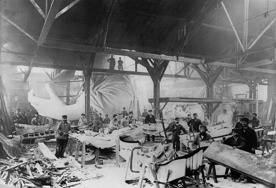ภาพนี้เป็นจุดเริ่มต้นของการก่อสร้างอนุสาวรีย์เทพีเสรีภาพ การก่อสร้างเริ่มขึ้นในวันที่ 28 ตุลาคม พ.ศ. 2429 และใช้เวลาสองปีจึงจะแล้วเสร็จ มันเป็นของขวัญจากฝรั่งเศสถึงชาวอเมริกันที่ระลึกถึงพันธมิตรของพวกเขา
