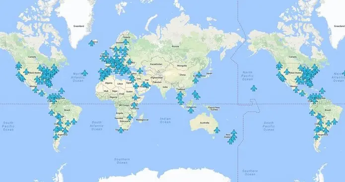 แผนที่ซึ่งรายงานโดย Mashable ปัจจุบันมีข้อมูลเข้าสู่ระบบสำหรับสนามบินที่แตกต่างกัน 127 แห่ง แต่รายการดังกล่าวกำลังเติบโตอย่างต่อเนื่อง