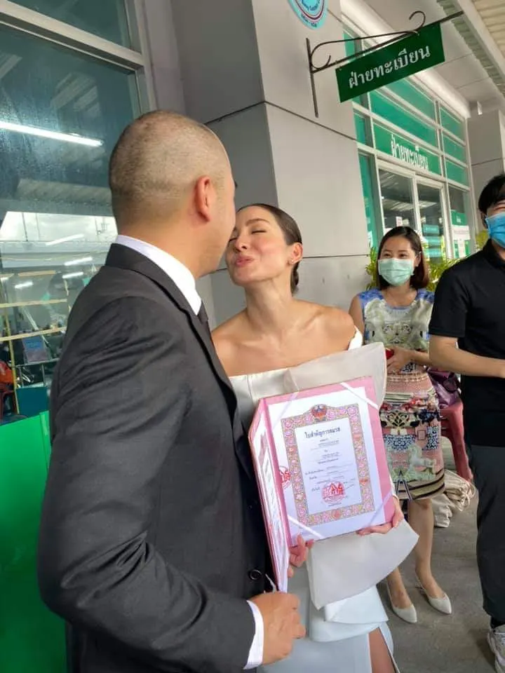 "โอซา แวง" ฤกษ์ดีควงสามีจดทะเบียนสมรส ณ.เขตลาดกระบัง หลังรอโควิด