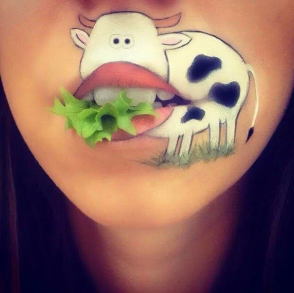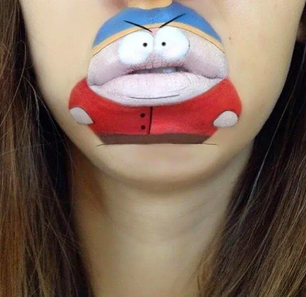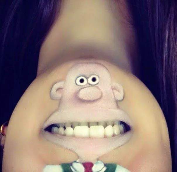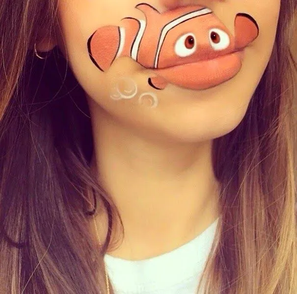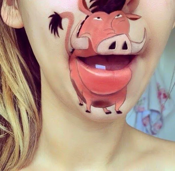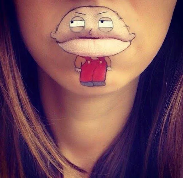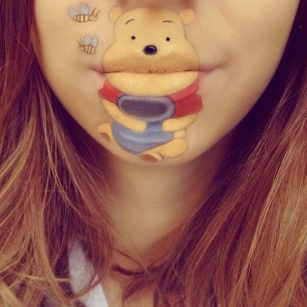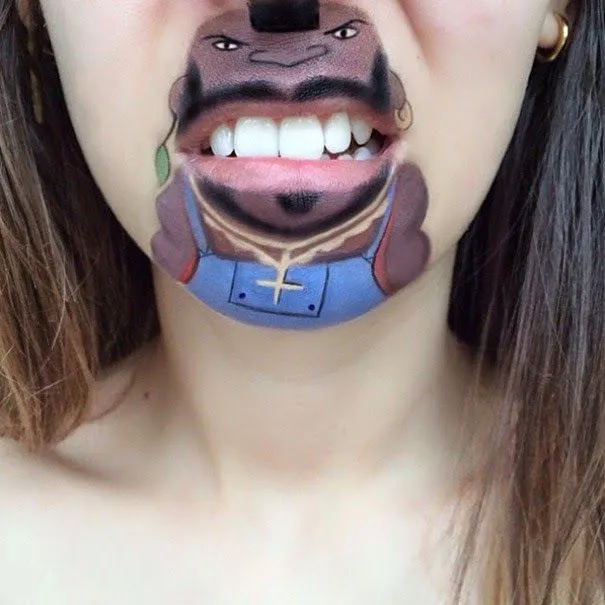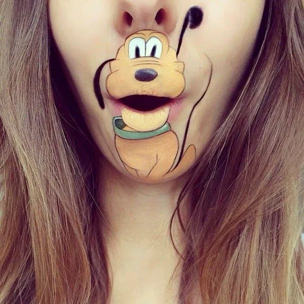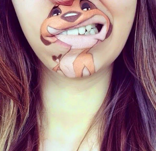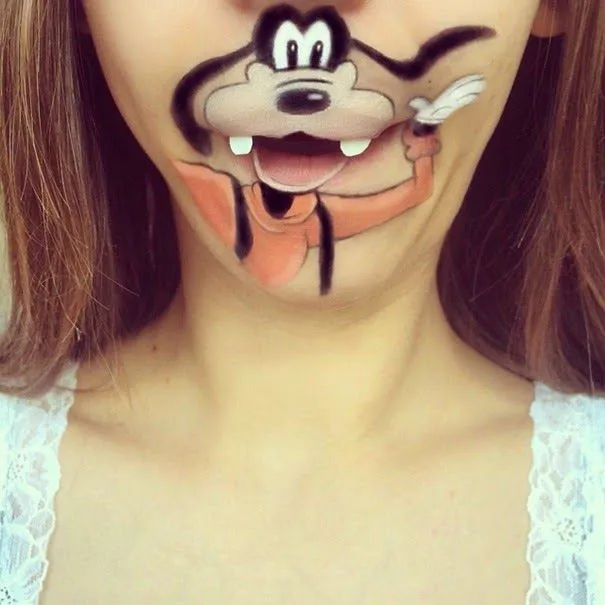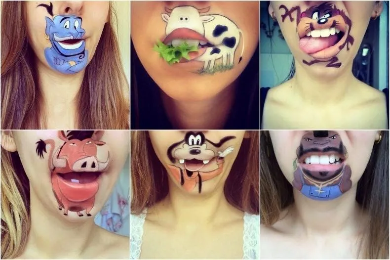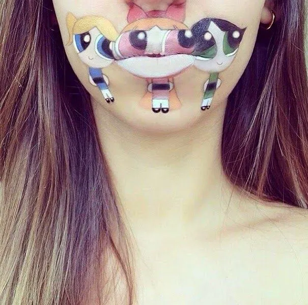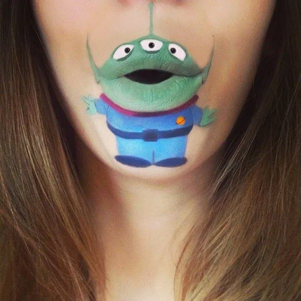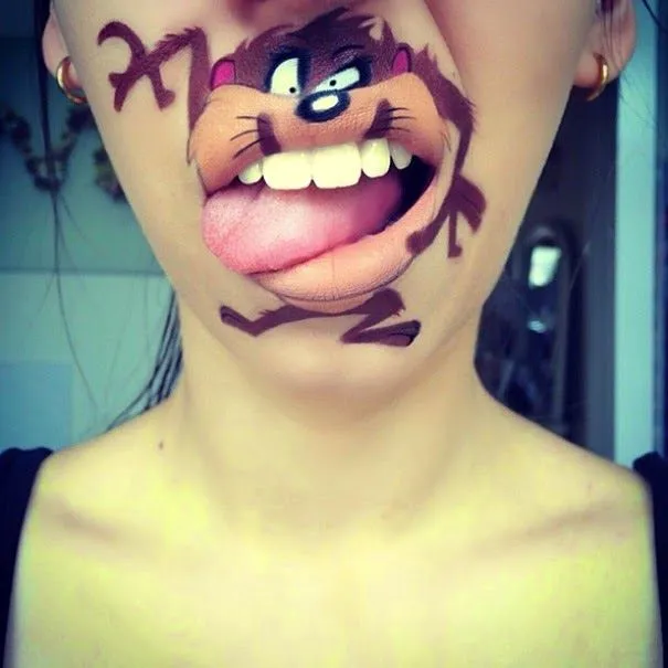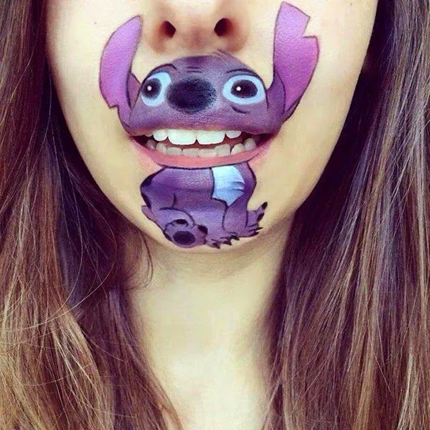 ช่างแต่งหน้าจากลอนดอนได้วาดตัวการ์ตูนที่น่ารักรอบ ๆ ปากของเธอ โดยผสมผสานฟันและริมฝีปากของเธอเข้ากับภาพวาด