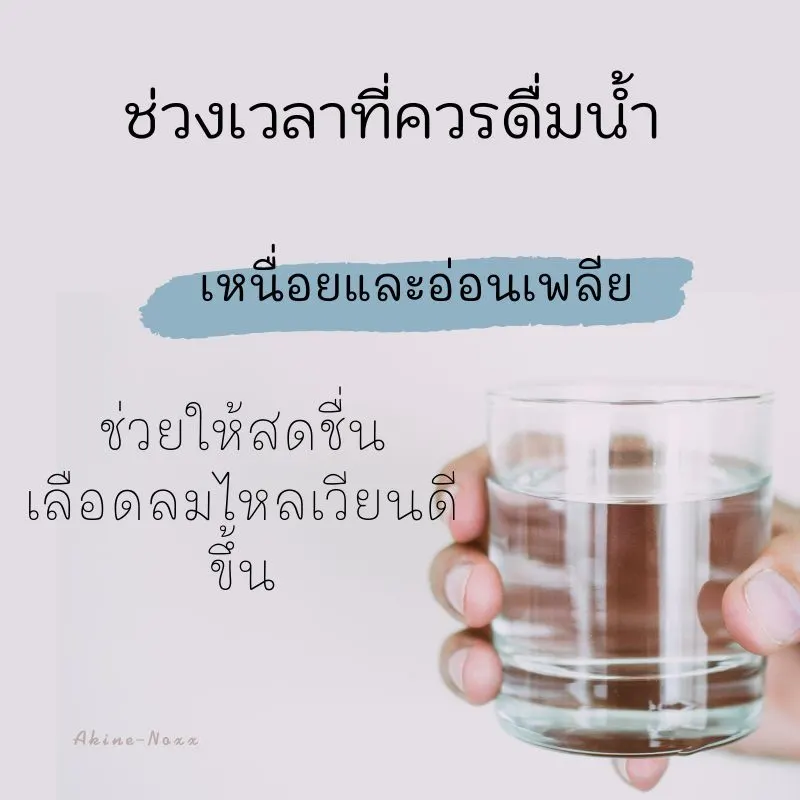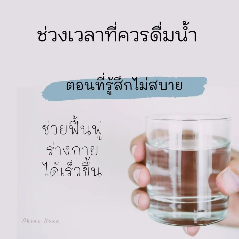 น้ำนี่สำคัญมากค่ะ ช่วงไหนเผลอไม่ใส่ใจดื่มน้ำน้อยจะทำให้เกิดปัญหาได้จริงๆ เลยอยากให้มาใส่ใจช่วงเวลาที่ควรดื่มน้ำกันหน่อย นอกเหนือจากดื่มตอนกระหายน้ำ เพราะนั่นคือสัญญาณว่าเราขาดน้ำไปสักระยะแล้ว ไม่ใช่แค่ต้องการน้ำค่ะ
