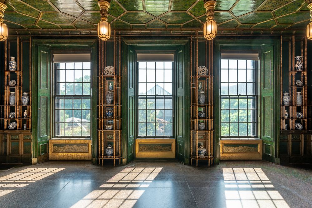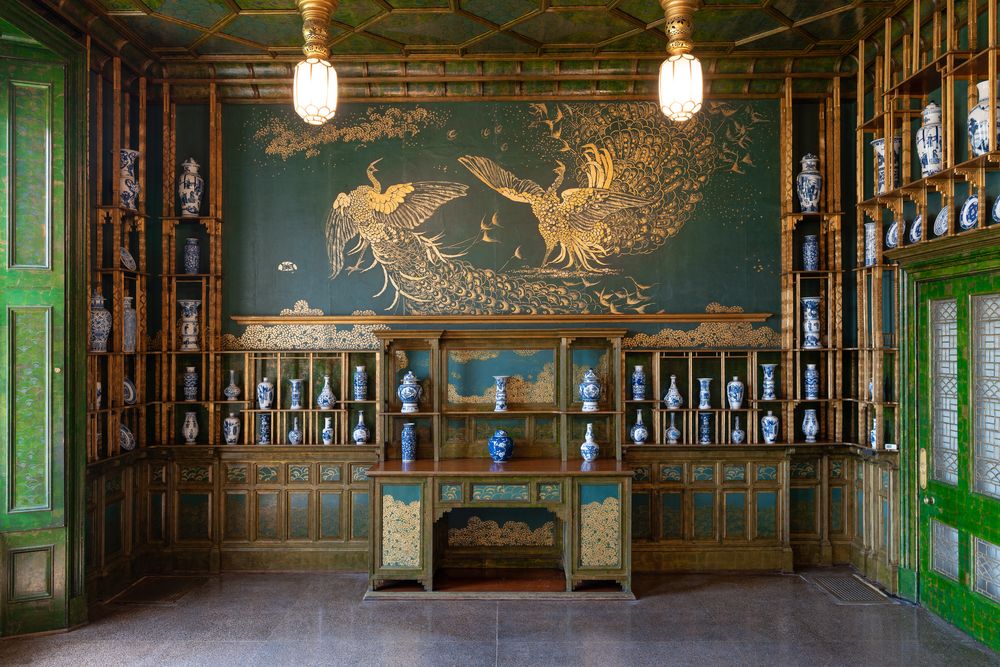 เลย์แลนด์มีคอลเล็กชั่นเครื่องลายครามสีน้ำเงินและสีขาวขนาดใหญ่ของจีนส่วนใหญ่มาจากยุคคังซีของราชวงศ์ชิงซึ่งเขาต้องการแสดงในห้องรับประทานอาหารของเขา สำหรับสิ่งเหล่านี้ Jeckyll ได้สร้างโครงตาข่ายที่ซับซ้อนของชั้นวางวอลนัทที่มีการแกะสลักและเสริมด้วยหนังปิดทองโบราณซึ่งเขาแขวนไว้จากผนัง ภาพวาดโดยศิลปินชาวอเมริกัน James McNeill Whistler เรียกว่าThe Princess จากดินแดนแห่งเครื่องเคลือบดินเผาครอบครองสถานที่เป็นเจ้าข้าวเจ้าของเหนือเตาผิง