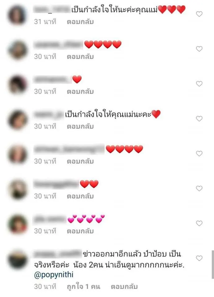 หลังจากที่มีกระแสข่าวดังกล่าวออกมา ก็มีชาวเน็ตแห่ไปคอมเมนต์ให้กำลังใจเป้ยกันมากมาย หลังจากที่คุณแม่คนสวย เป้ย ปานวาด โพสต์คลิปลูกๆ น้องโปรดและน้องปาลินที่กำลังนอนหลับอยู่ข้างๆ กันอย่างน่าเอ็นดูต่างส่งกำลังใจและบอกให้สาวเป้ยสู้ๆ