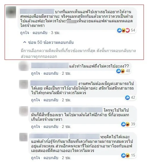 แต่แล้วล่าสุดเหมือนจะเกิดดร่าขึ้นจนได้ หลังมีคนแห่วิจารณ์ว่าแอฟไม่สมควรที่จะมางานนี้ ซึ่งมีการระบุข้อความใน Facebook ประมาณว่า บางทีแมทเห็นแอฟไปเขาเลยไม่อยากให้งานศพพ่อเพื่อนมีดราม่านะ จริงๆแมทสนิทกับแต้วมากกว่าควรเป็นฝ่ายไปแล้วแอฟอ่ะไม่ควรไปนะ เห็นอวยแต่แอฟด่าแต่แมทตลอดใครจ้างมาหราโพสท์โดย: seeyounexttime