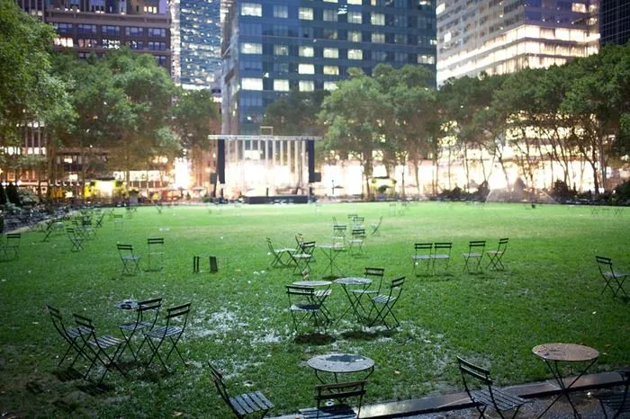 เก้าอี้นั่งในไบรอันท์ปาร์ค (Ramsay de Give สำหรับ The Wall Street Journal)