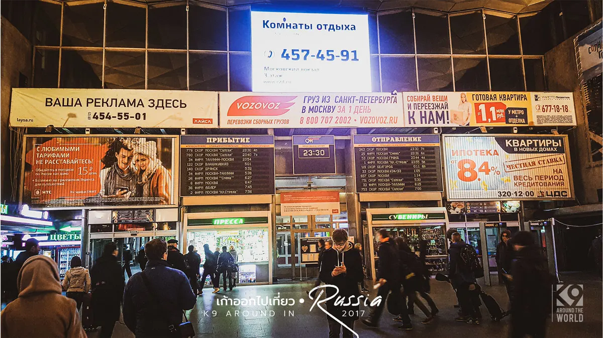 รถไฟนอน (Night Train) จะออกจาก Saint Petersburg ประมาณตี 1 ที่สถานี Moskovsky station ไปถึง Moscow ประมาณ 10 โมงเช้า ที่สถานี Leningradsky station ถ้าหากเที่ยวบินกลับดึก ก็ยังสามารถนั่งรถไฟ Metro เข้าไปเที่ยวใน Moscow ได้อีกหลายชม. ไม่ต้องห่วงสัมภาระเพราะที่สถานีรถไฟมีรับฝากกระเป๋า