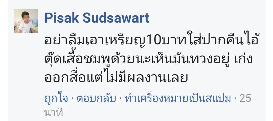 ชาวเน็ตคอมเมนท์คืนเงิน 10 บาทคืนให้ตุ๊ดเสื้อชมพู.