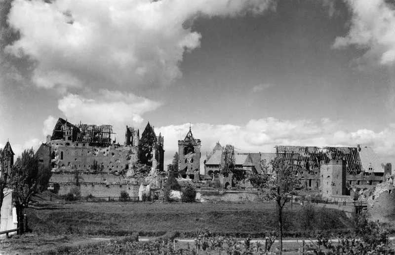 การทำลายปราสาท Malbork ในช่วงสงครามโลกครั้งที่ 2 รูปถ่าย: Daniel.widawski / Wikimedia Commons