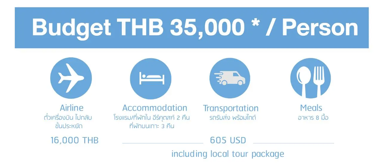 ค่าใช้จ่ายอาจจะแตกต่างกันไปในแต่ละบุคคล ขึ้นอยู่กับราคาตั๋วเครื่องบิน ค่าจ้างไกด์ท้องถิ่น (Local Tour) และค่าใช้จ่ายส่วนตัวอื่นๆ
