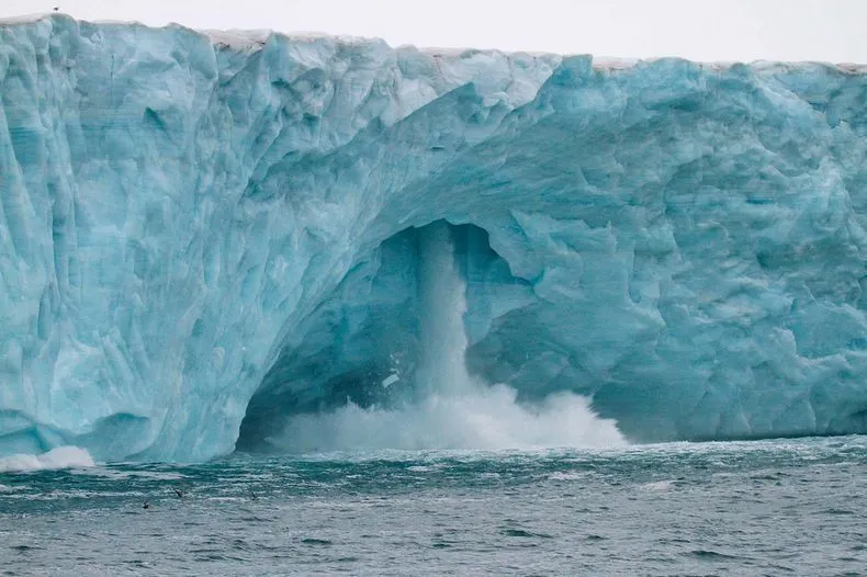 น้ำตกธารน้ำแข็งอันงดงามในสฟาลบาร์ประเทศนอร์เวย์