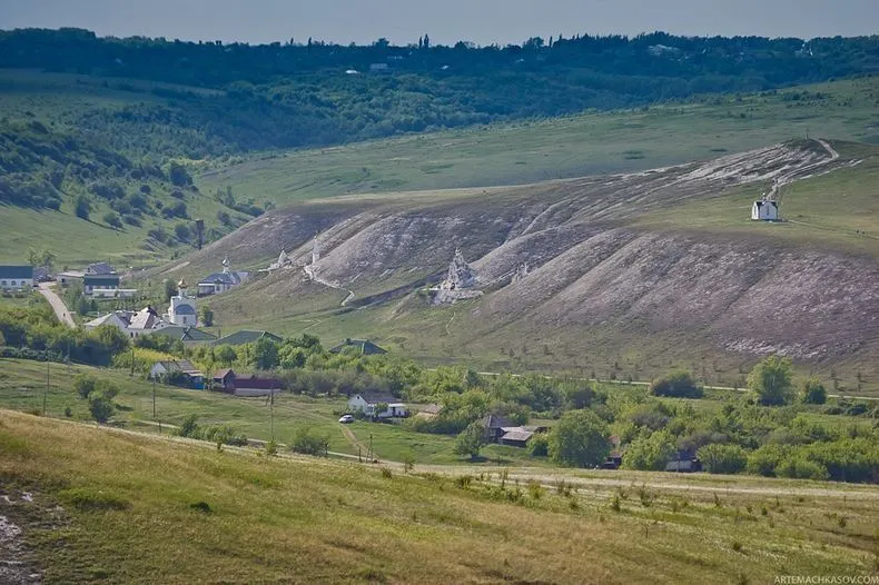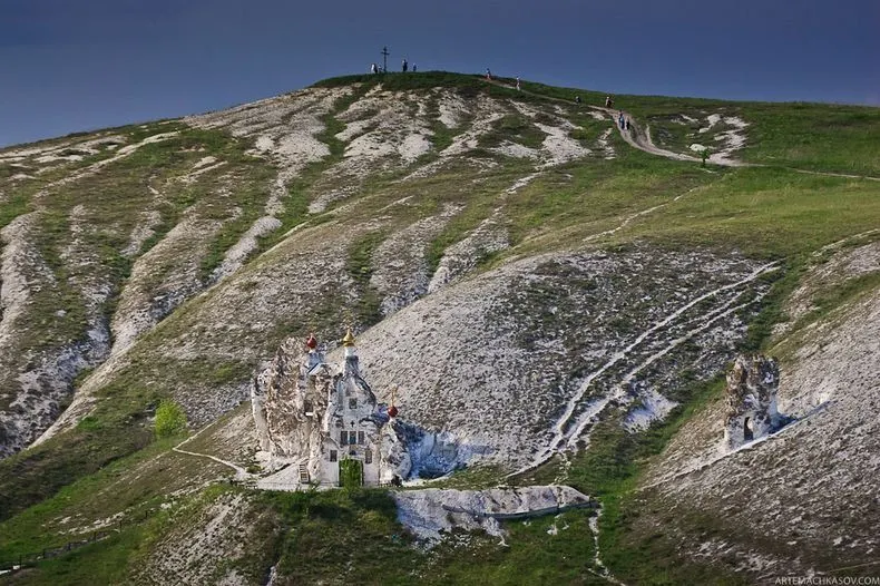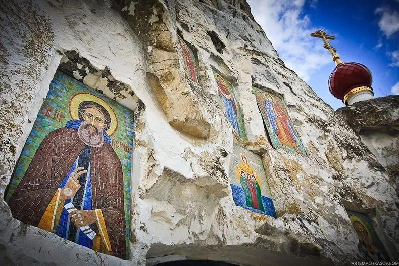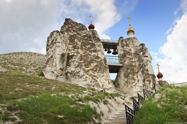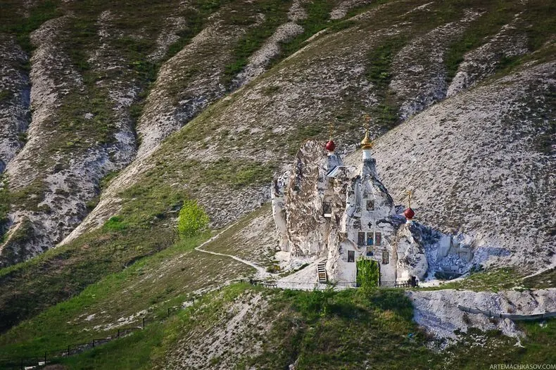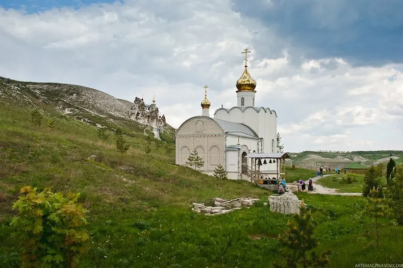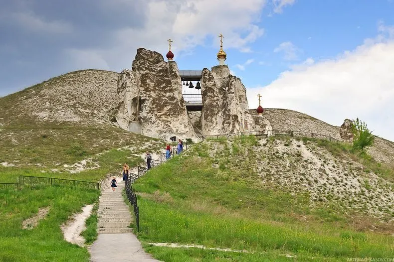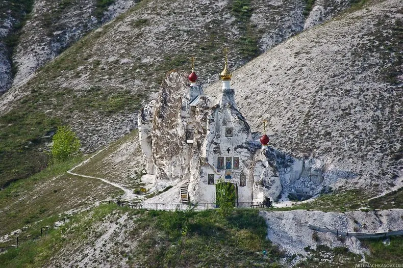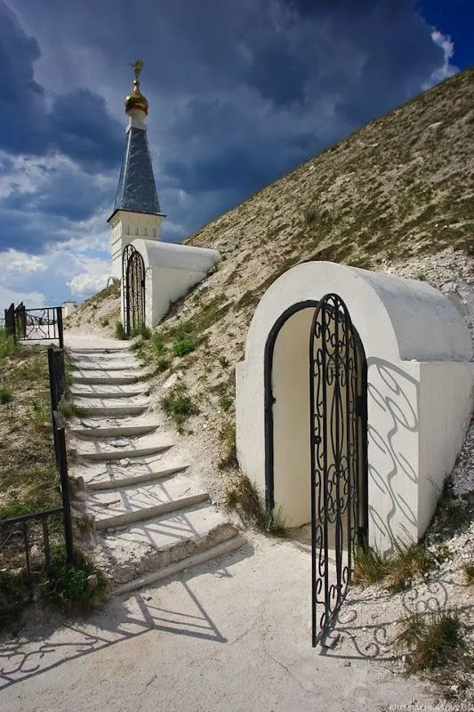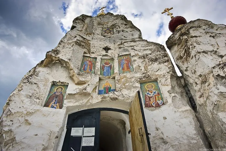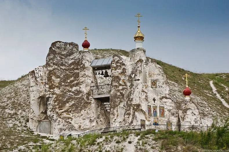 Svyato-Spassky Convent ใน Kostomarovo เป็นวัดถ้ำโบราณตั้งอยู่ห่างจากเมือง Voronezh ไปทางใต้ประมาณ 150 กิโลเมตรใช้เวลาขับรถ 3 ชั่วโมง มีสองคริสตจักรในถ้ำเหล่านี้: วิหารสปาสกี้ขนาดใหญ่ที่มีเสาและโบสถ์เซนต์เทวดาซาราฟายขนาดเล็ก วิหาร Spassky ตั้งอยู่ลึกเข้าไปในหน้าผาที่มีทรายขาวละเอียดเพื่อสร้างการตกแต่งภายในที่กว้างขวางซึ่งสามารถจุคนได้มากถึง 2,000