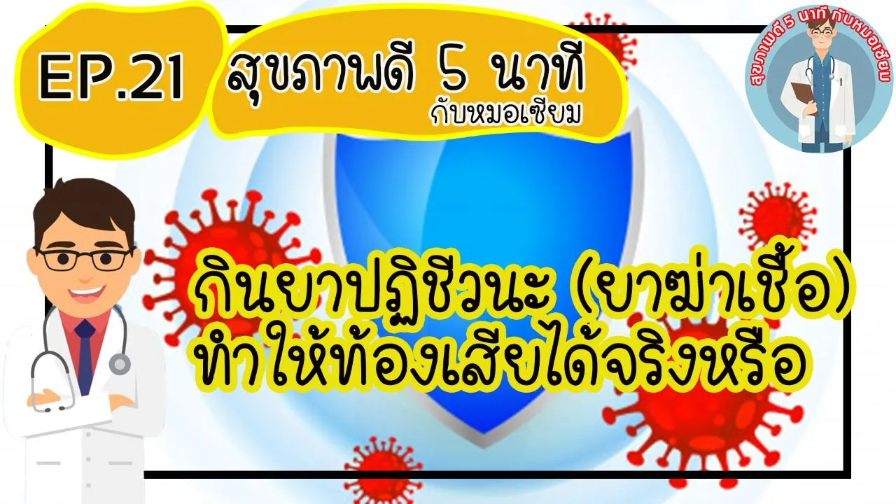 สุขภาพดี 5 นาที EP21 กินยาปฏิชีวนะ (ยาฆ่าเชื้อ) ทำให้ท้องเสีย ได้จริงหรือ??