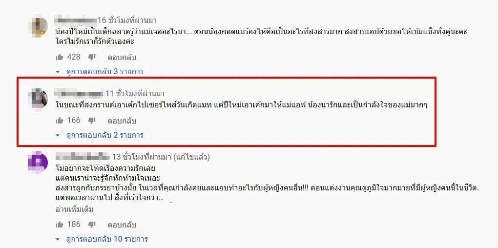 "ในขณะที่สงกรานต์เอาเค้กไปเซอร์ไพส์วันเกิดแมท แต่ปีใหม่เอาเค้กมาให้แม่แอฟ น้องน่ารักและเป็นกำลังใจของแม่มากๆ "