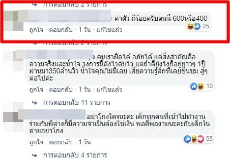ซึ่งหลังจากที่โพสต์ดังกล่าวได้ถูกแชร์ออกไป ก็มีชาวเน็ตแห่เข้ามาแสดงในเชิงเหน็บแนมว่า “ค่าตัว กี่ร้อยครับคนนี้ 600 หรือ 400”