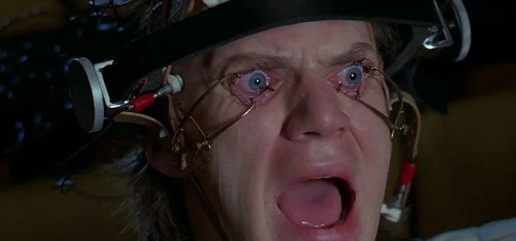 การแสดงของ Malcolm McDowell ในผลงานชิ้นเอก A Clockwork Orange ของ Stanley Kubrick ทำให้เขากลายเป็นดารา ในฉากที่โดดเด่นที่สุดเรื่องหนึ่งของภาพยนตร์อเล็กซ์ตัวละครของเขาเบิกตาโพลง ลำดับจะกินเวลาเจ็บปวด ดวงตาของเขาเปิดค้างไว้เป็นเวลานานจนนักแสดงตาบอดชั่วคราวและกระจกตาถลอก